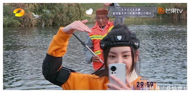 在第三个任务中,每支队列指定对方3名队员,限时完成主题拍照任务,于文文也被指定了,她的任务是和荡舟大爷拍摄一张比心的错位照。 于文文当作很快,她跑到了湖边,看见1位大爷正在湖里荡舟,她拚命地喊大爷靠过来,可是她的声息也引来了猎东谈主,于文文立时匍匐在湖边的草丛中。 在猎东谈主走后,她立时收拢契机,和荡舟大爷完成了比心拍照,是哥哥队中第一个完成拍照任务的,不外她的鞋都是泥巴,脚也湿了,实属不易。