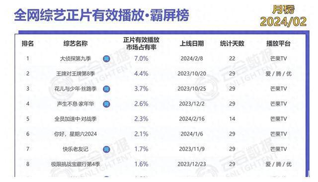 不知为何,芒果台近期播出的多档综N代,都不按套路出牌,从名字就可见一斑。 比如,《哎呀好身体》第5季叫《哎呀好身体奔赴季》,《时光音乐会》第3季叫《时光音乐会知友记》,《花儿与少年》第5季叫《花儿与少年丝路季》,不仅是名字多了后缀,节目也有不小的变化。 最新开播的快综《全员加快中》,也加了后缀叫《全员加快中对战季》,邀请了东谈主气很高的“0713”和“院东谈主”作念常驻嘉宾,整季节目就以2大团体PK为看点,看哪一边在猎东谈主的追捕中临了幸存的东谈主数更多,从节目称呼看就很刺激。 诚然是2月中旬才开播,但节目灵验播放量阛阓占比达2.3%,位居2月份全网综艺名次榜TOP5,逾越了友台的快综《极限挑战矿藏行4》,收获可圈可点。